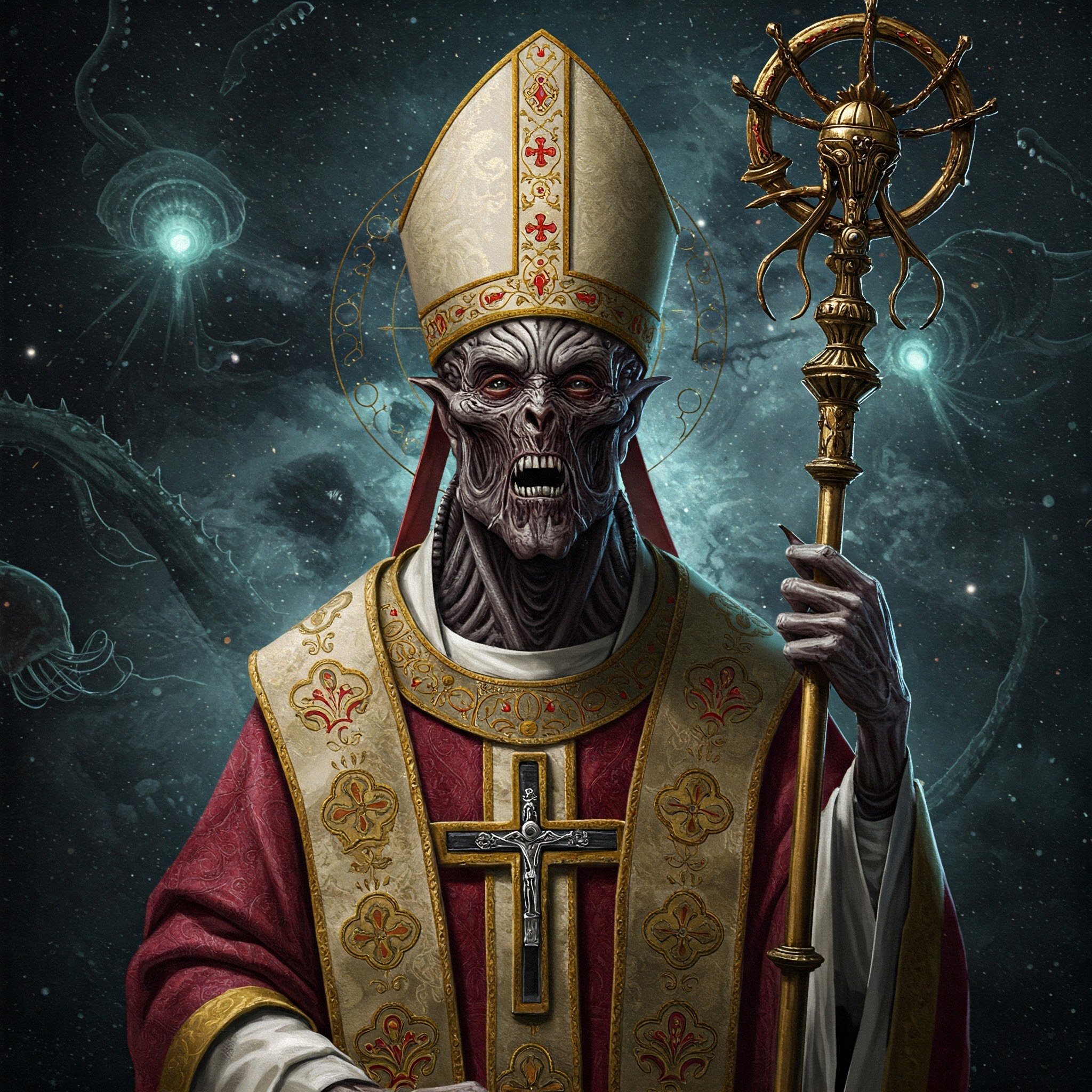 “I am the culmination of cosmic design.” The Pope raised his hands, and the skin began to split along invisible seams, revealing a chitinous exoskeleton beneath. “Tomorrow, I will address the world. I will reveal the ‘miracle’ of the Second Coming. And when I do, it will be the signal for our ships to decloak in the skies above every major city.”